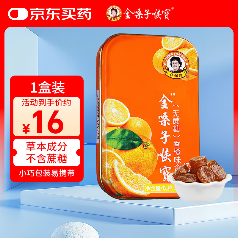 金嗓子喉宝无蔗糖香橙味含片22.8g12粒/盒硬质糖果学生军训教师主播润嗓
