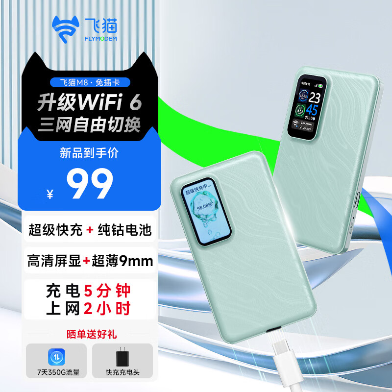 飞猫M8 4G随身wifi6无线移动wifi免插卡全网通无线上网卡车载随行无线网笔记本电脑通用流量2024新款