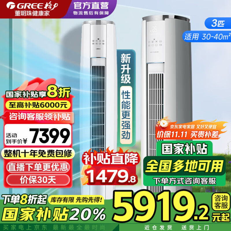 格力(GREE)空调3匹云锦三代 新一级能效省电变频冷暖 家用大客厅立式圆柱柜机冷酷外机 官方正品家电国家补贴 3匹 一级能效 云锦Ⅲ新升级款【冷酷外机】