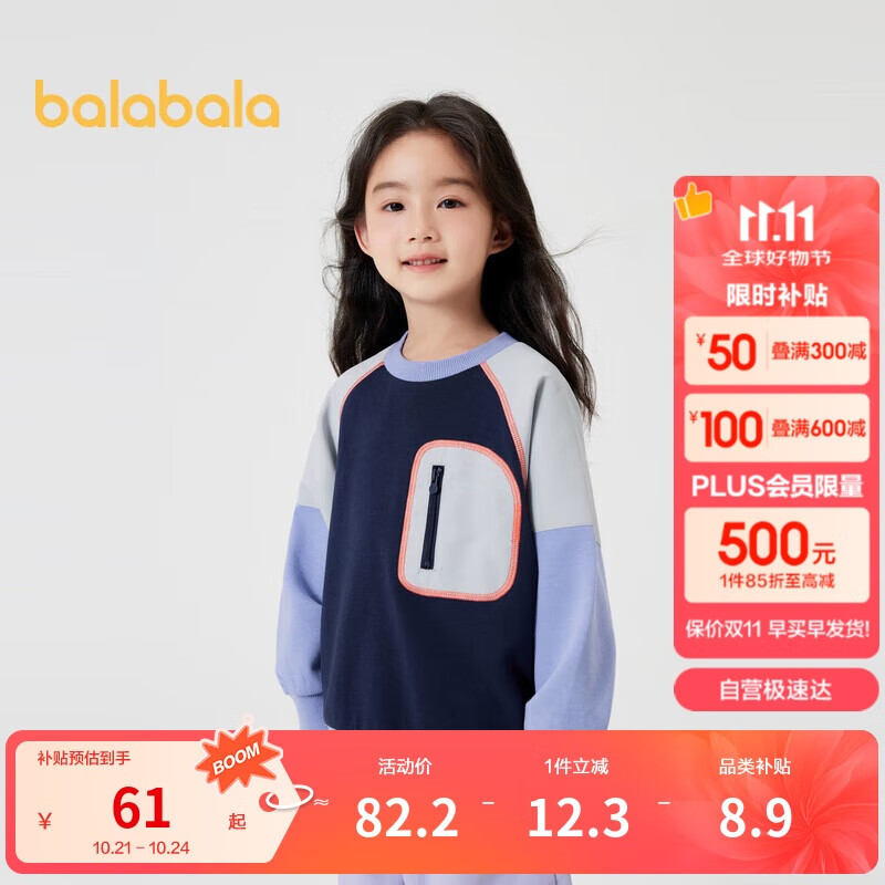巴拉巴拉童装儿童卫衣男童女童秋装宽松2024撞色拼接上衣潮流208324121208