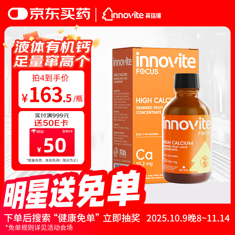 英珞维儿童有机海藻钙滴剂 96%有效钙摄入 50mg钙/ml 苹果口味60ml
