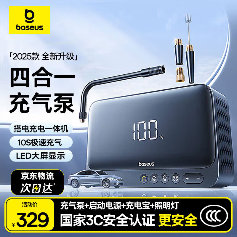 倍思【国家3C认证】汽车应急启动电源充气泵一体机搭电宝户外移动电源