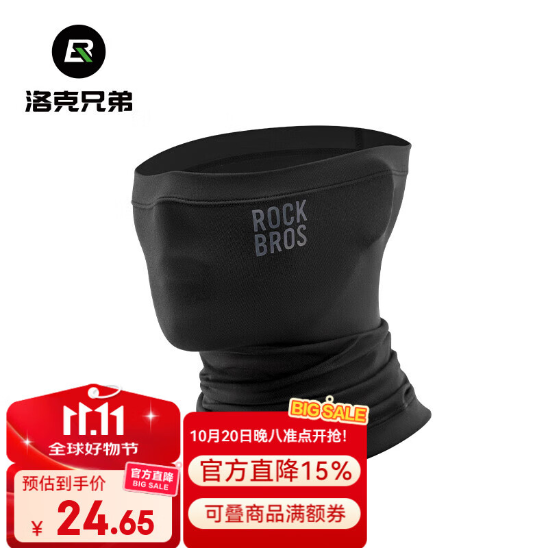 洛克兄弟骑行面罩秋冬防风保暖围脖护颈透气抓绒头巾男女户外装备 黑色