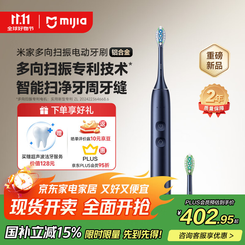 米家【家电国家补贴】小米多向扫振电动牙刷 专利技术 智能扫净牙周牙缝 铝合金 蓝色【重磅新品】
