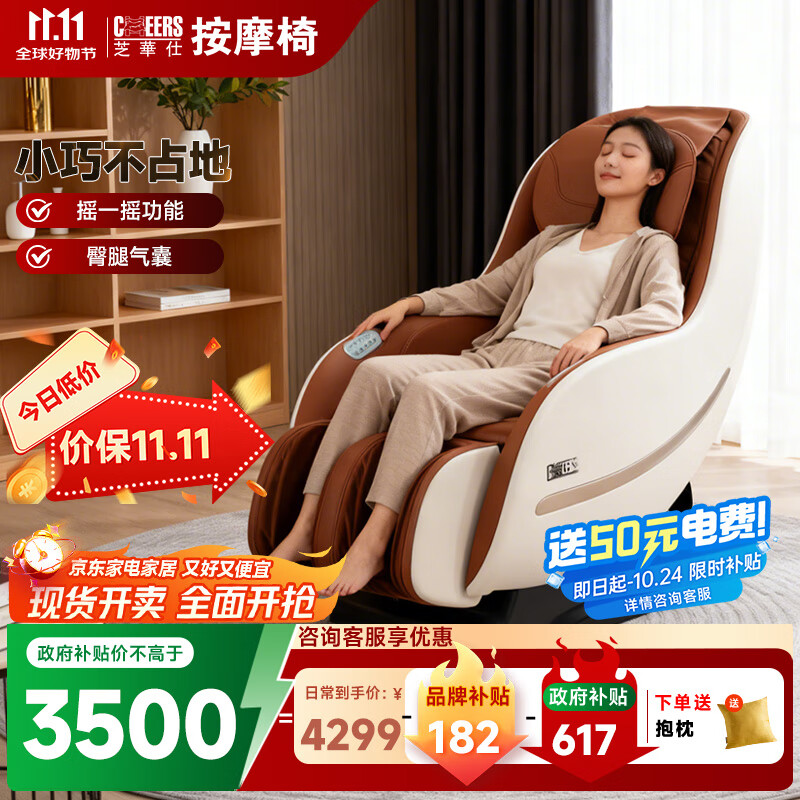 芝华仕(CHEERS)按摩椅家用全身全自动 京东自营 政府补贴 小型摇摇椅送父母长辈生日礼物 M2050焦糖色-现货闪发