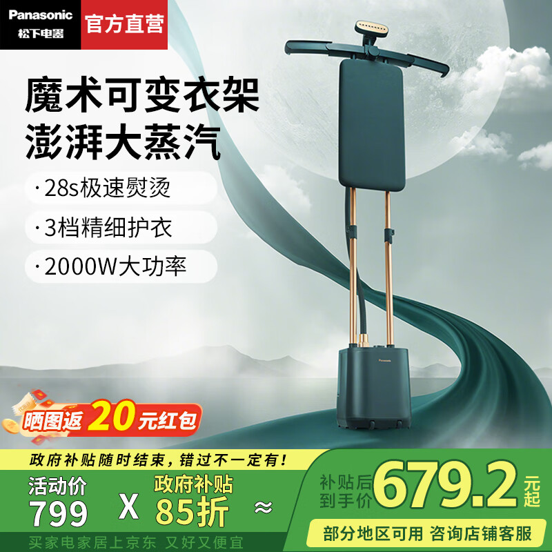 松下(Panasonic)【国家补贴】新款挂烫机 家商两用熨烫机双杆烫衣板增压蒸汽电熨斗烫衣服神器精细护衣NI-GWG070-G 松石绿【可伸缩魔术衣架】GWG070