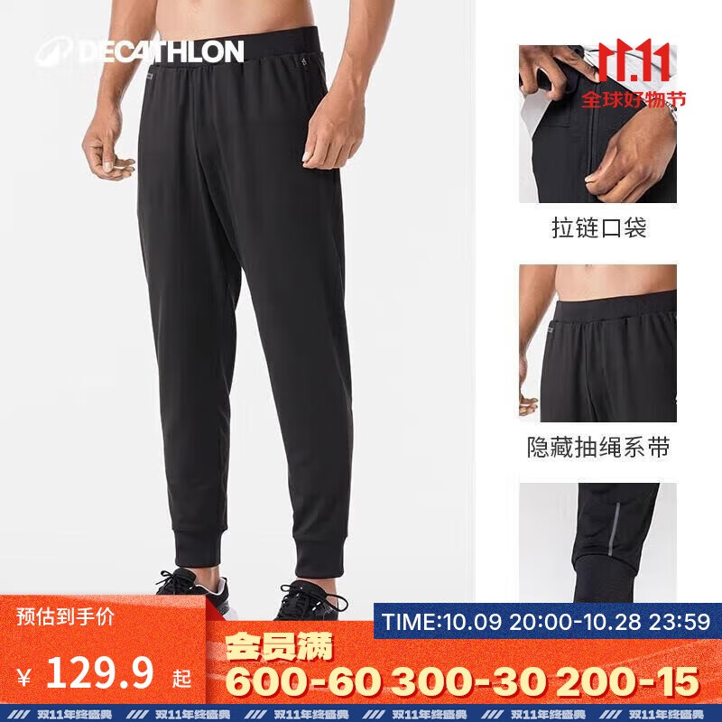 迪卡侬男秋冬保暖防风透气针织运动裤户外跑步健身束脚裤黑色L-4884395