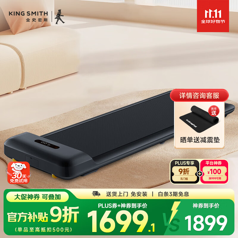 金史密斯走步机免安装可折叠家用款智能跑步机WPC2F运动健身器材青墨黑
