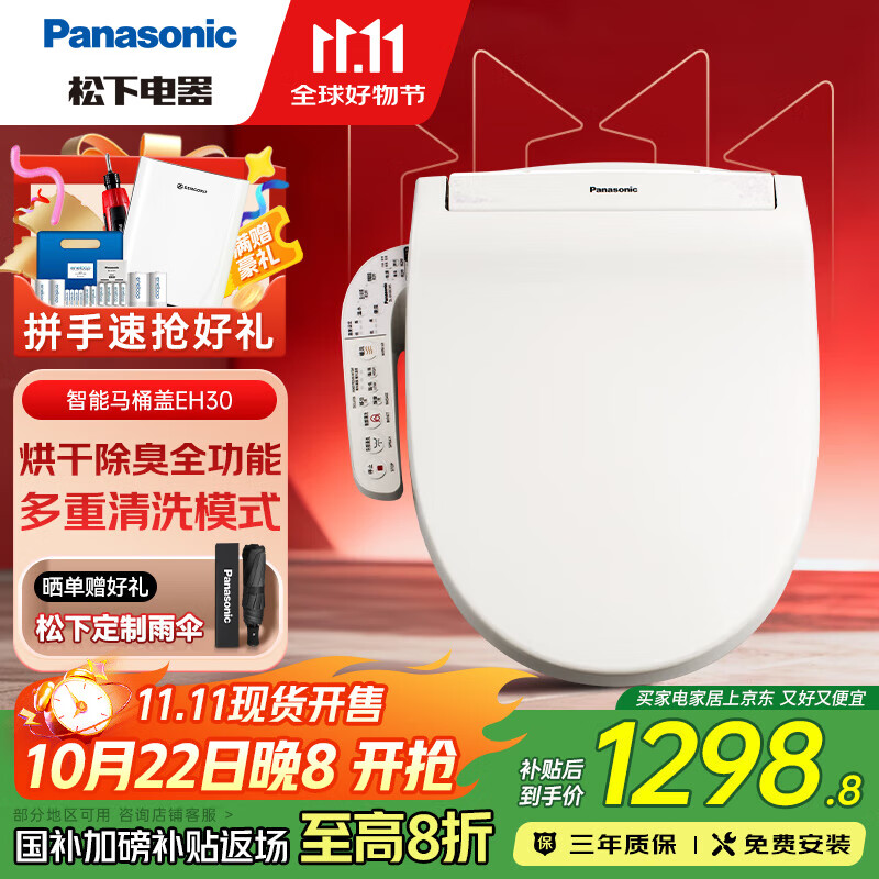 松下(Panasonic)智能马桶盖 马桶坐便器盖板电动加热冲洗洁身器 烘干除臭EH30