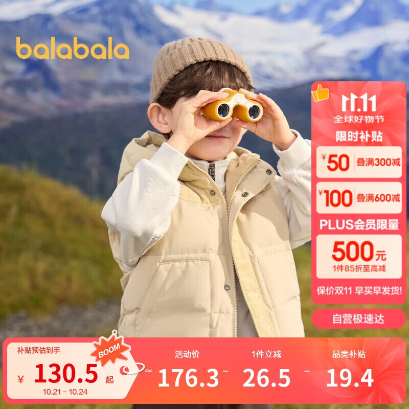 巴拉巴拉男童装儿童羽绒马甲连帽外套冬装灯芯绒【商场同款】201424101101