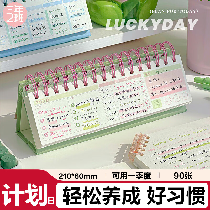 三年二班 桌面每日计划本学习计划本120张高颜值办公工作日志日程自律打卡本记录本 日计划
