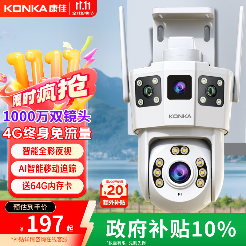 康佳4g监控无线摄像头无需连wifi终身免流量监控器360度无死角带夜视全景手机远程家用高清室户外插电
