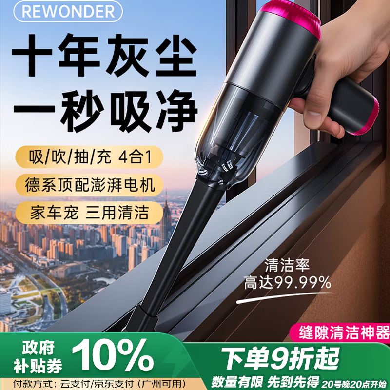 REWONDER【车家宠3用丨暴风吸力】车载吸尘器大吸力无线手持家车两用超长续航铅笔便携紫色桌面吸尘器