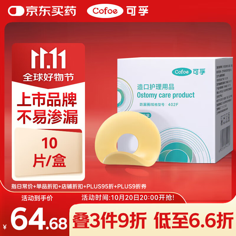 可孚造口防漏圈造口护理用品402F-2mm 10片/盒 医用造瘘底盘可塑贴环