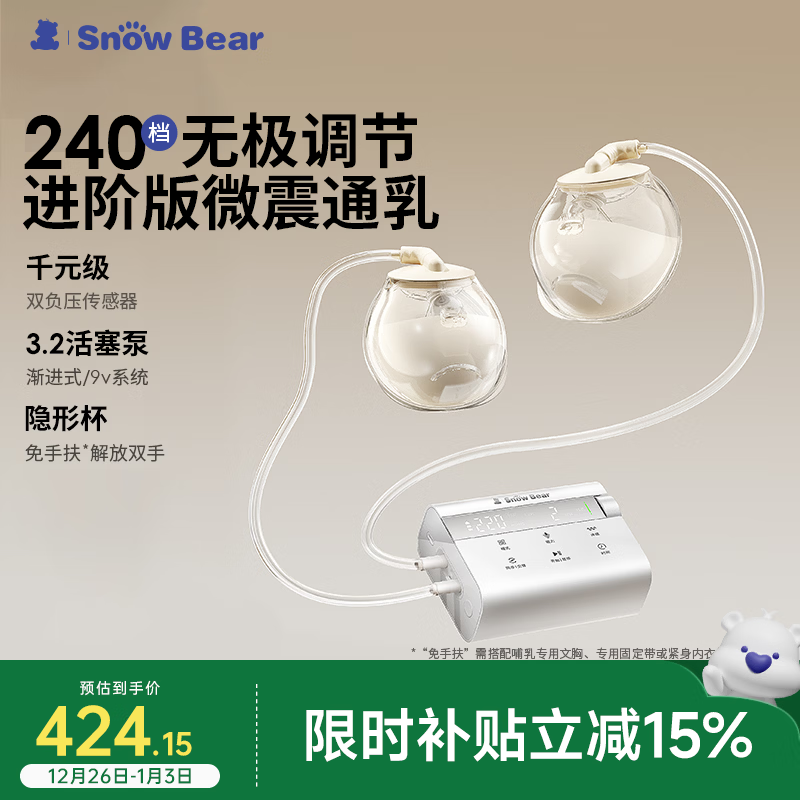 小白熊SnowBear吸奶器 电动无极全自动免手扶通乳 双边集奶器3061X