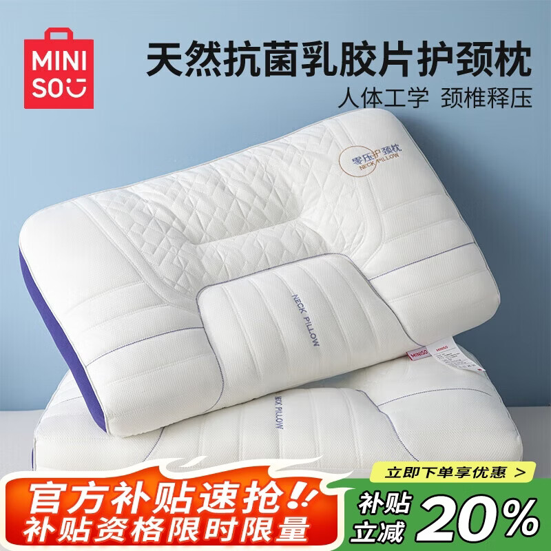 名创优品(MINISO)天然抗菌枕头护颈枕深度睡眠专用 人体工学释压颈椎枕头芯单只
