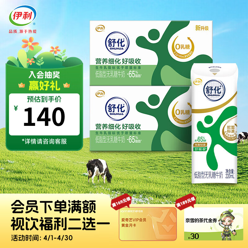 伊利舒化奶无乳糖牛奶低脂牛奶 0乳糖2-3月产 舒化低脂奶24盒*2箱