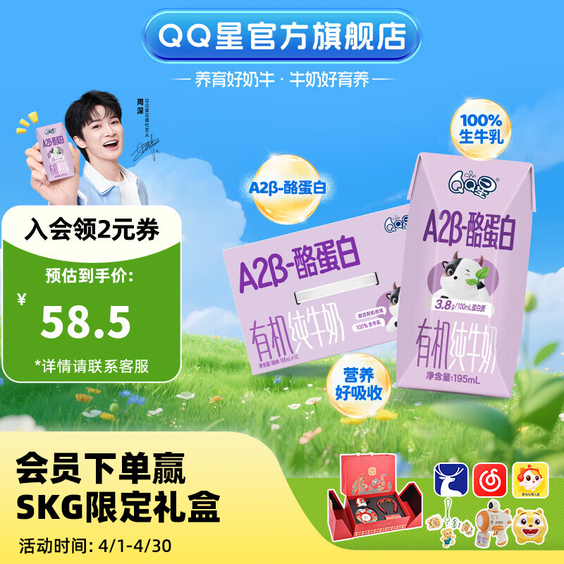 QQ星蛋白有机儿童纯牛奶195ml*10 礼盒装【周深同款QQ星】1月产