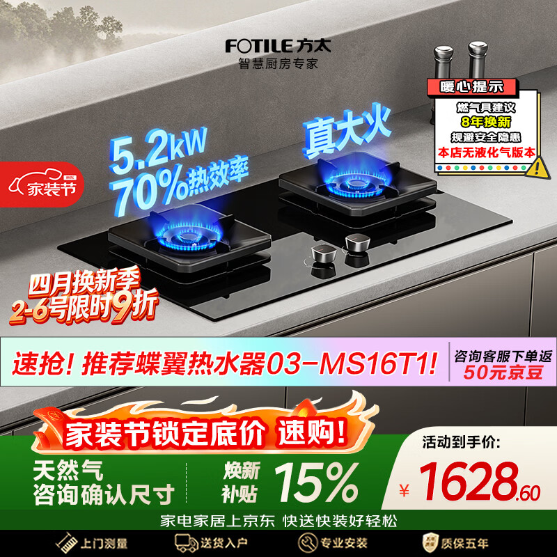 方太TF29B燃气灶【天然气】嵌入式双灶台 大火力爆炒厨房家用双眼猛火灶具 超一级能效 5.2kW70%热效率