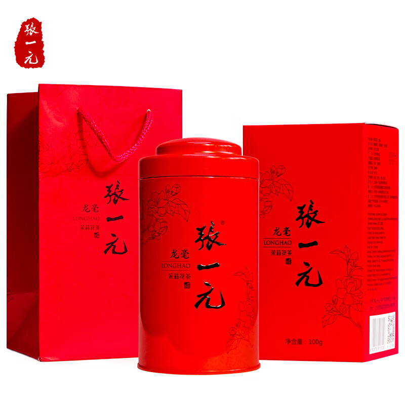 张一元茶叶特种八窨茉莉花茶茉莉龙毫礼盒配手提袋 中华老字号送礼茗茶 龙毫100g