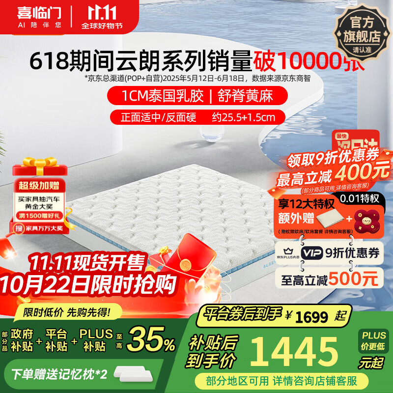 喜临门云朗弹簧床垫 抗菌防螨 泰国进口乳胶床垫正反双睡 云朗Pro-厚25.5cm【指定尺寸闪送】 1.8*2米