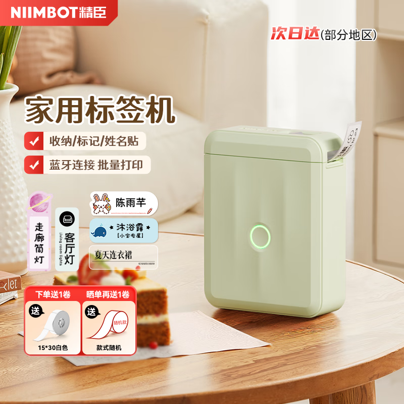 精臣D110春绿智能标签打印机 学生姓名贴家用收纳分类标记日期便签手账贴纸蓝牙手持便携打价器