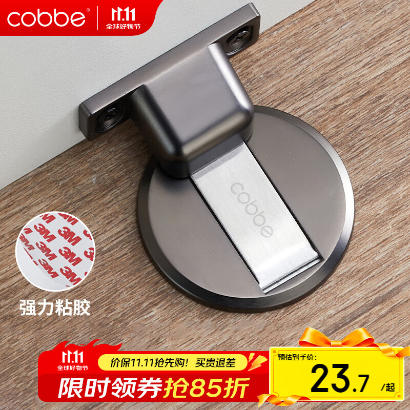 卡贝门吸免打孔防撞地吸门阻器门挡强力磁铁隐形地吸卫生间门碰枪灰色