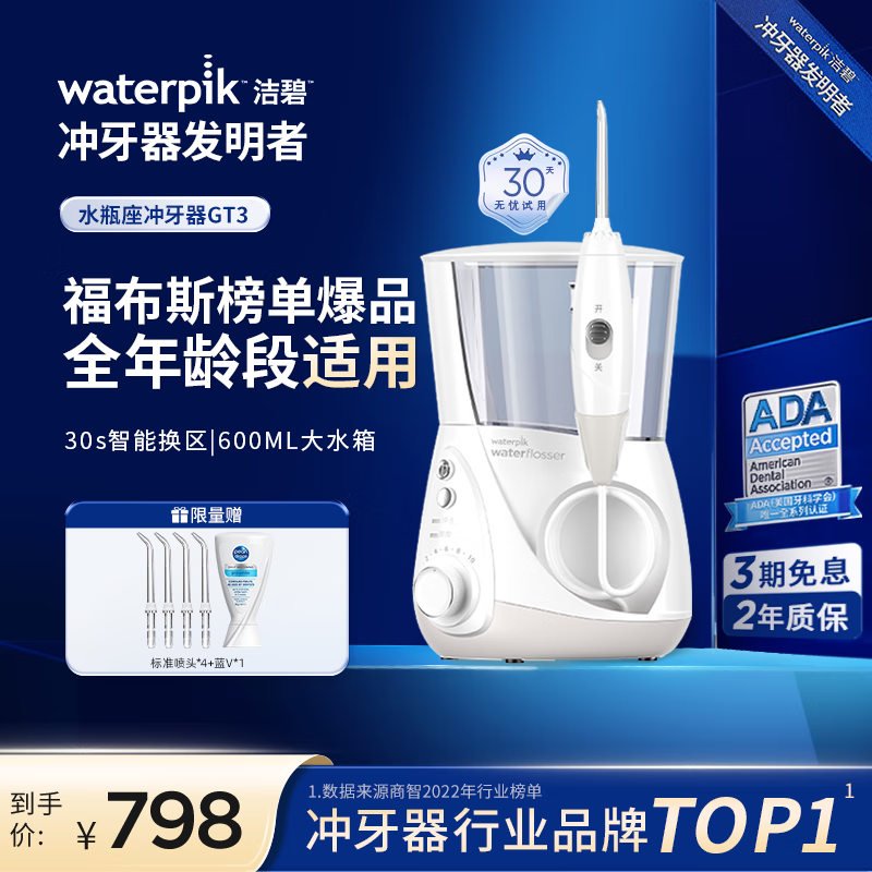 洁碧冲牙器水瓶座GT3-12白 家用台式电动洗牙器水牙线洁牙器预防牙结石牙齿冲洗器 生日礼物赠礼