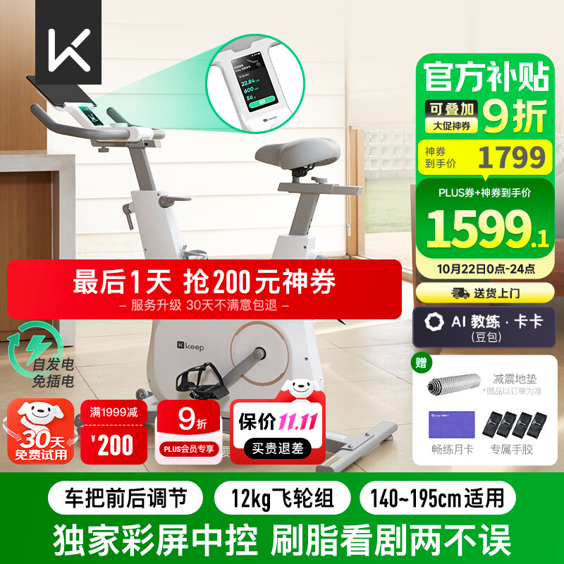 Keep动感单车 家用健身器材12kg飞轮组 升级彩屏C3全能 自发电K0105E