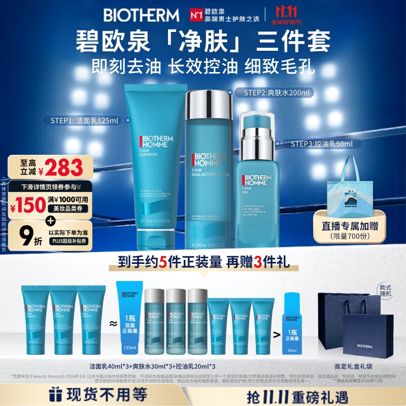 碧欧泉男士净肤细致套装(洗面奶+爽肤水+保湿乳)礼盒生日礼物送男友