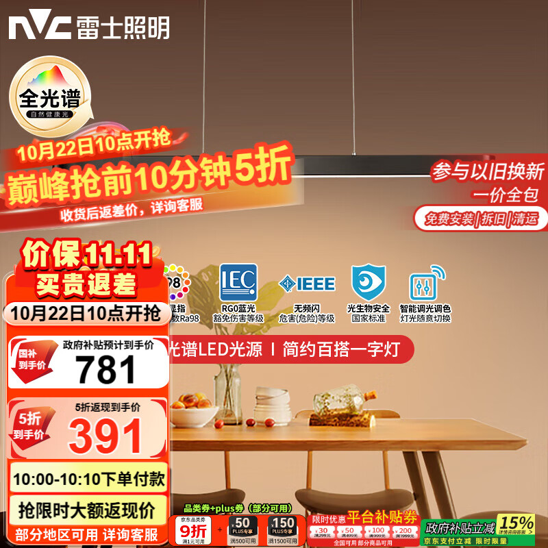 雷士(NVC)一字灯餐厅灯智能全光谱吸顶吊灯高显指长条餐桌雅黑WHDD53F/G-01