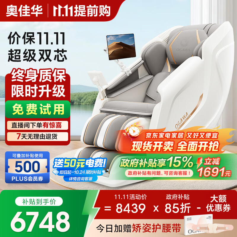 奥佳华按摩椅十大品牌家用太空舱全身肩颈揉捏智能3D机芯电动太空舱送老人生日礼物7508Pro3.0丝绒云灰