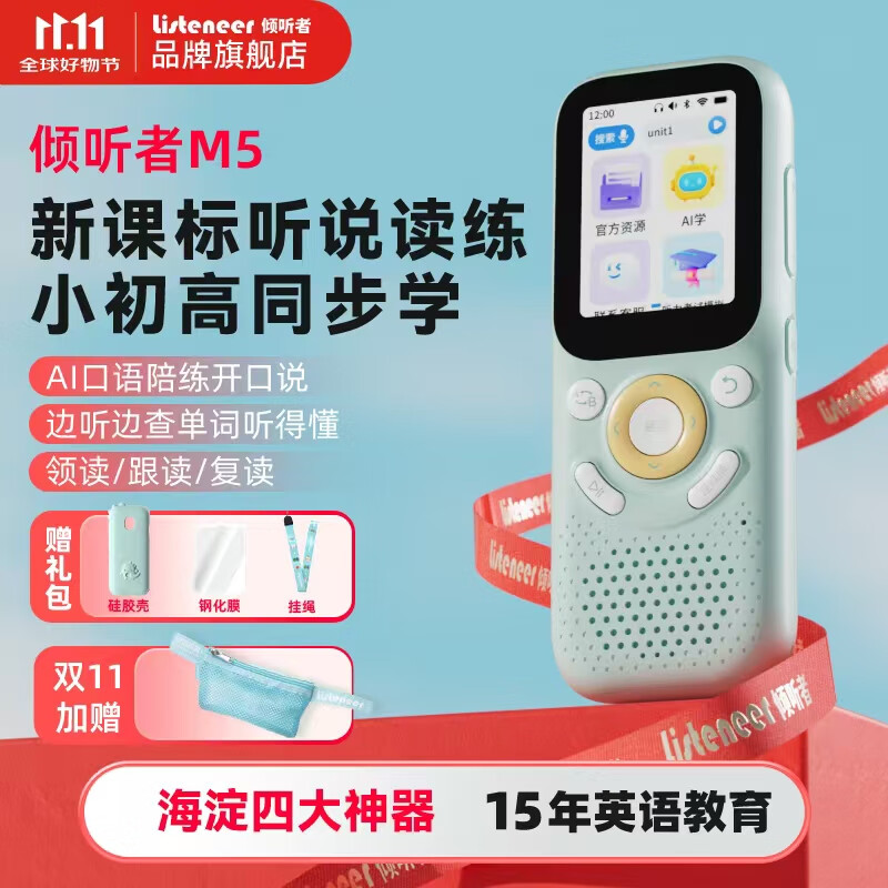 listeneer倾听者M5英语听力宝新课标单词机M2S升级款复读机AI智能听力学习机中考高考提升背单词 蓝色64G