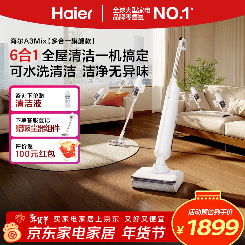 海尔(Haier)可水洗洗地机A3Mix【1机6用】22000Pa大吸力 平躺防缠 热水洗洗拖吸一体自动清洗拖地机