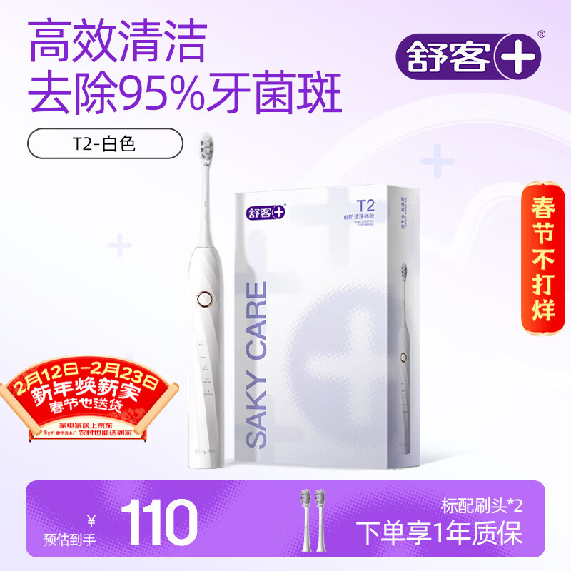 舒客情侣电动牙刷智能换区成人学生牙刷送男友/女友5种模式 生日礼物 新年货礼物T2小米白 牙刷