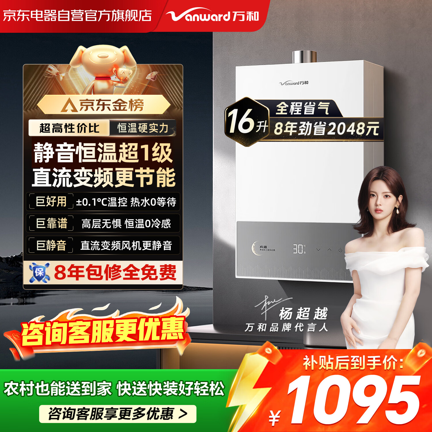 万和(Vanward)燃气热水器天然气16L静音家用直流变频双循环水伺服恒温1级节能 JSQ30-16C10【线下同款】上门安装