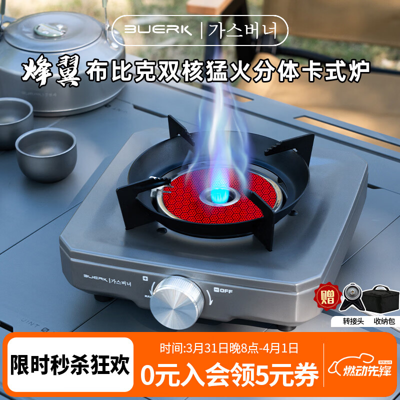 布比克(BUERK)新型便携分体卡式炉稳压猛火灶户外炉具煮茶燃气炉双核钛色8kw