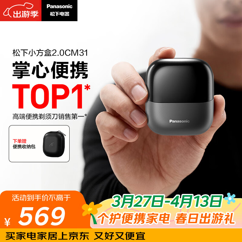 松下(Panasonic)小方盒2.0电动剃须刀便携款往复式进口磁悬浮马达电动刮胡刀Type-c可水洗男士生日礼物男友CM31黑