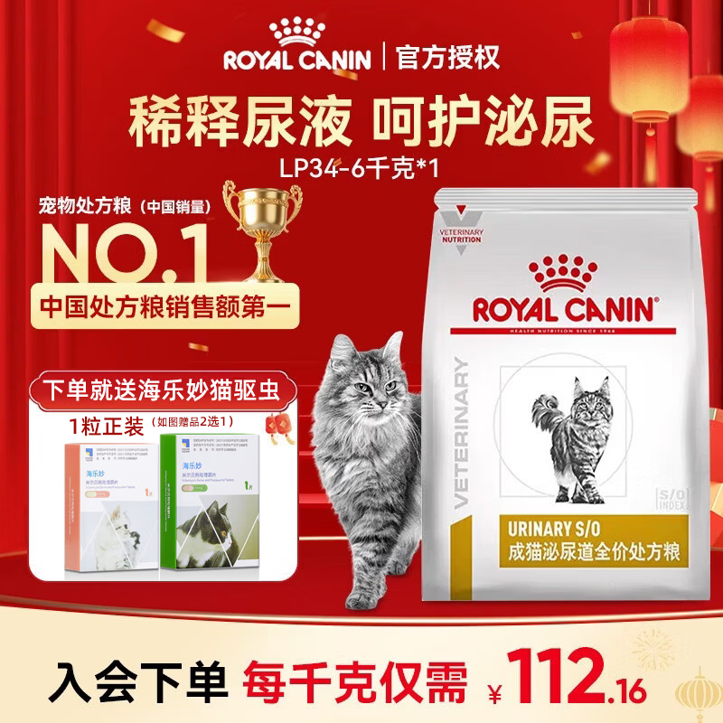 皇家处方粮LP34皇家泌尿道处方猫粮royal canin泌尿道结石 猫尿频 LP34成猫泌尿道 6kg*1袋