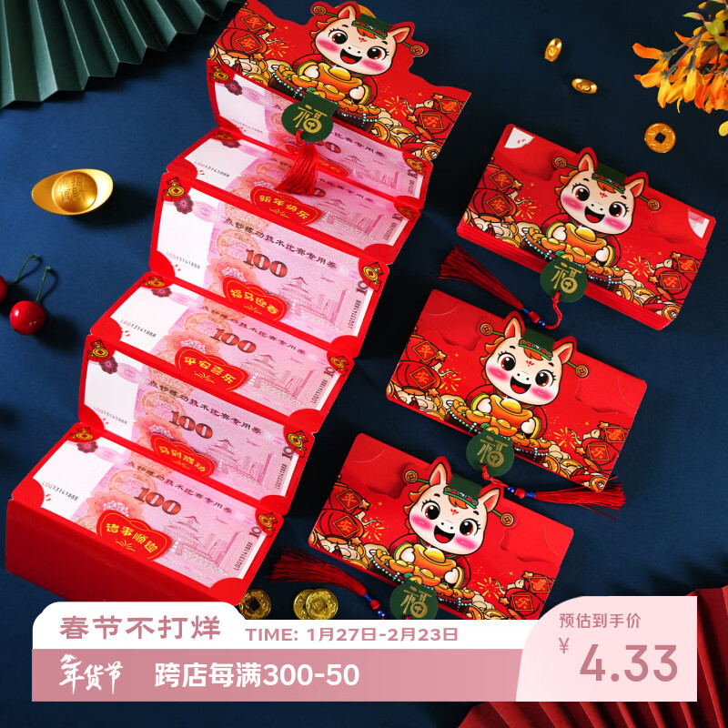 庆喜良缘2026马年折叠红包10卡位新年红包袋春节卡通儿童压岁包过年封包