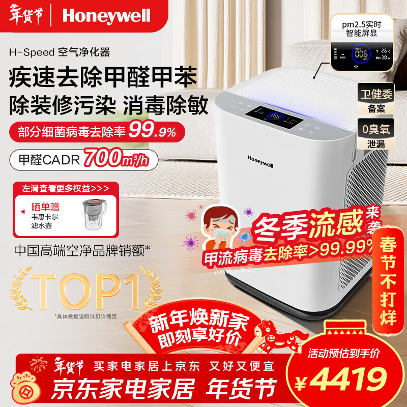 霍尼韦尔(Honeywell)空气净化器除甲醛细菌花粉过敏原tvoc流感病毒 新房除醛 空气消毒机KJ760F-P22W