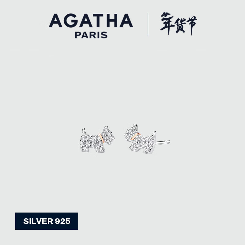 AGATHA/瑷嘉莎 法兰西小狗银耳钉女 新年生日礼物送女友闺蜜高级感耳饰