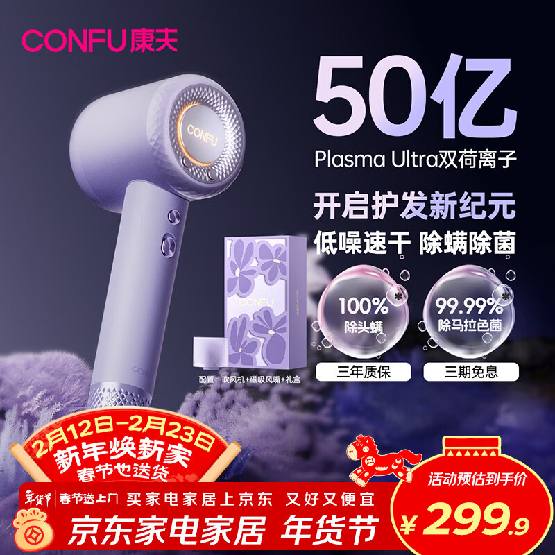 康夫(CONFU)高速护发吹风机50亿等离子家用大功率大风力速干生日礼物 新年礼物送女友电吹风筒F9Pro尤莱特紫