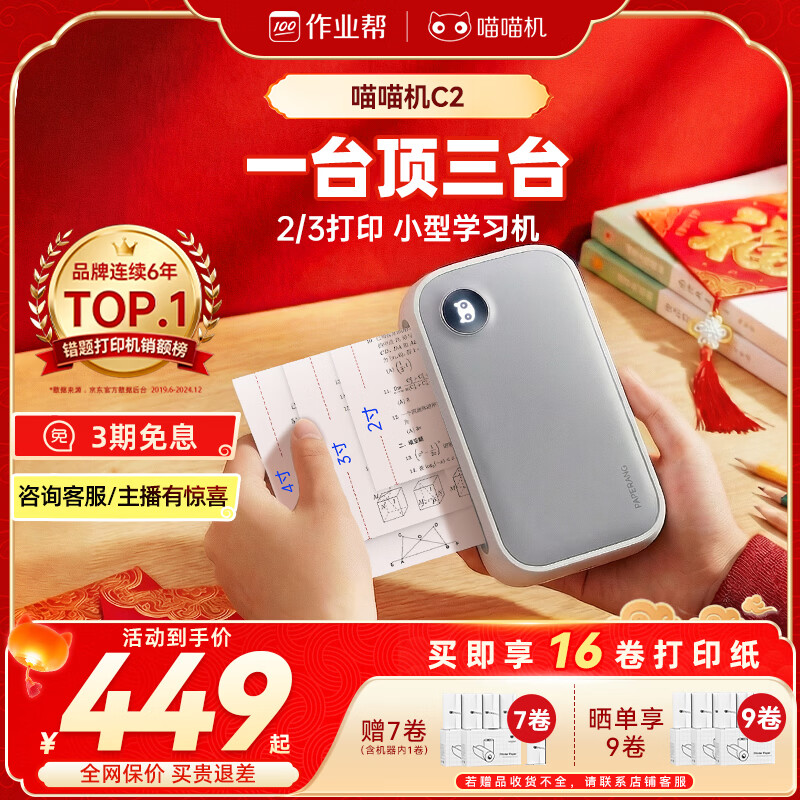 喵喵机错题打印机C2家用2/3/4英寸高清灰阶超宽幅4英寸作业帮错题整理神器学生便携迷你口袋照片热敏打印