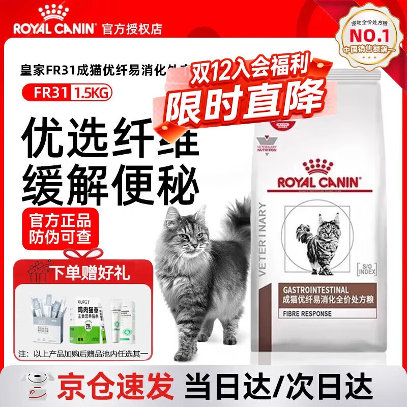 皇家处方粮猫粮FR31猫高纤优纤维易消化处方粮1.5kg 易消化处方猫粮 1.5kg*1袋