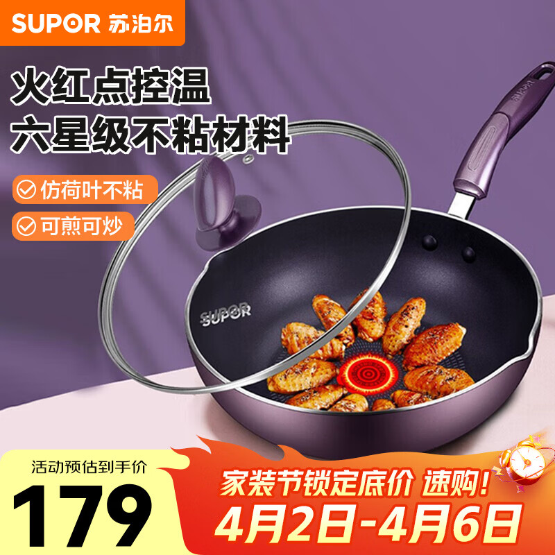 苏泊尔(SUPOR)火红点炒锅不粘平底煎锅煎炒锅厨房炒菜锅电磁炉燃气通用 PJ28R4- 28cm