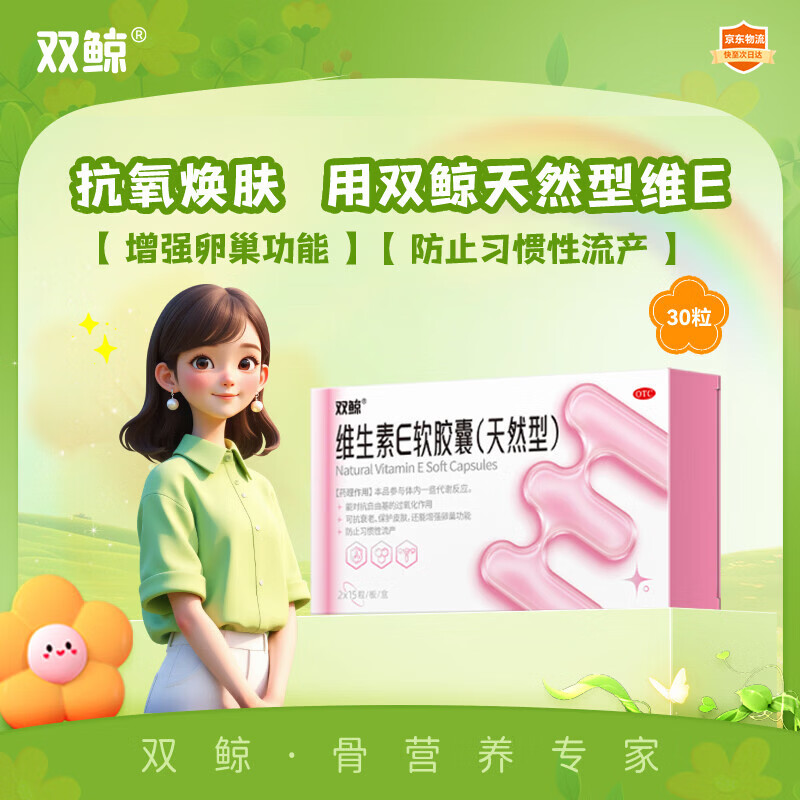 双鲸 维生素E软胶囊(天然型) 100毫克*2*15粒/板/盒(30粒/盒)抗衰老 护肤 增强卵巢功能