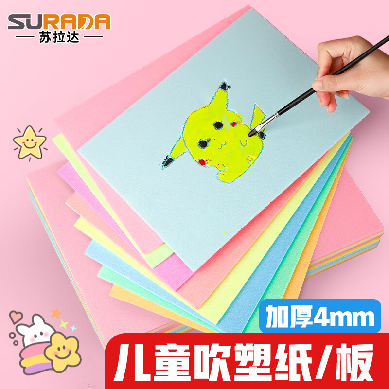 苏拉达(Surada)吹塑纸 吹塑板彩色吹塑纸版画儿童手工diy制作装饰绘画板涂鸦美术画板 a4混色10张hc010 速写 马克笔绘画