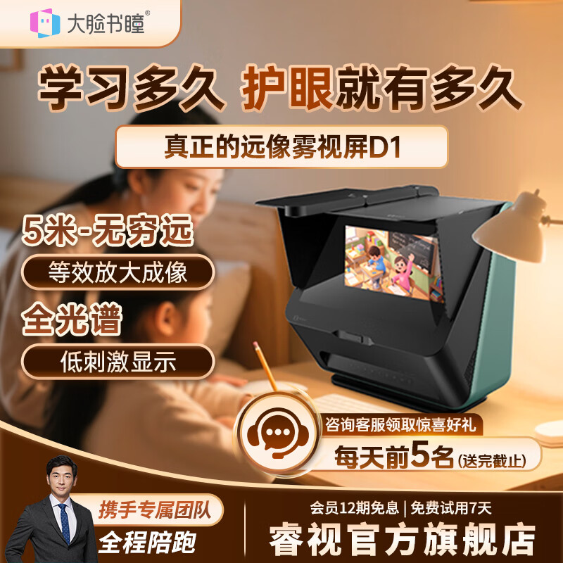 大脸书瞳睿视雾视屏D1读写台远像屏远像光屏数字离焦4L智慧护眼远望屏远视屏护眼屏视力训练学习机学练机 远像雾视屏D1
