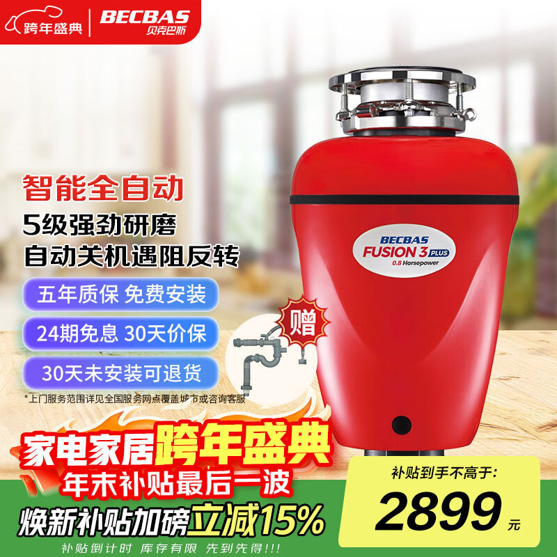 贝克巴斯(BECBAS)家用智能垃圾处理器厨余粉碎机自动关机F3PLUS